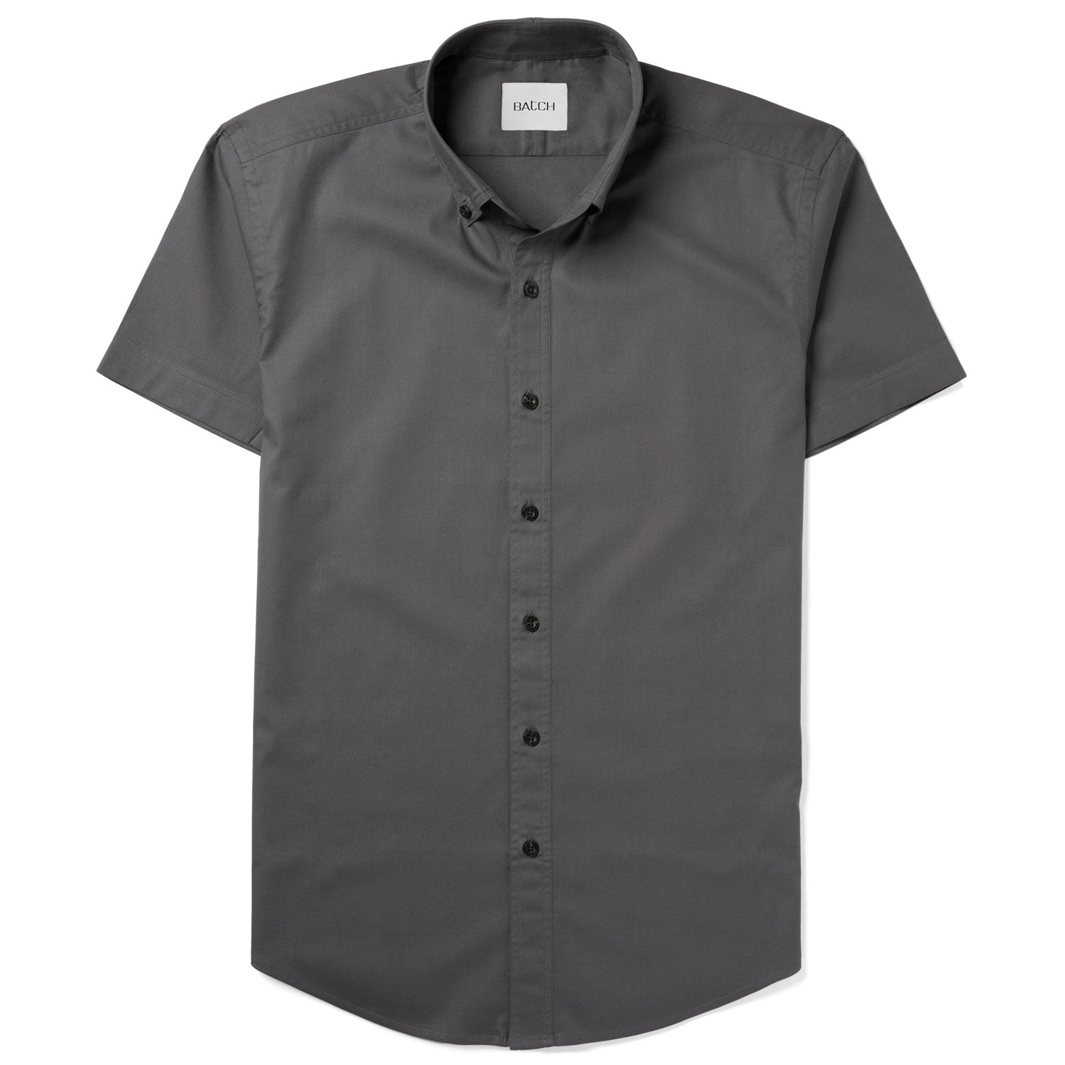 Essential Button Down Collar Casual Short Sleeve Shirt - Slate Gray Cotton Twill