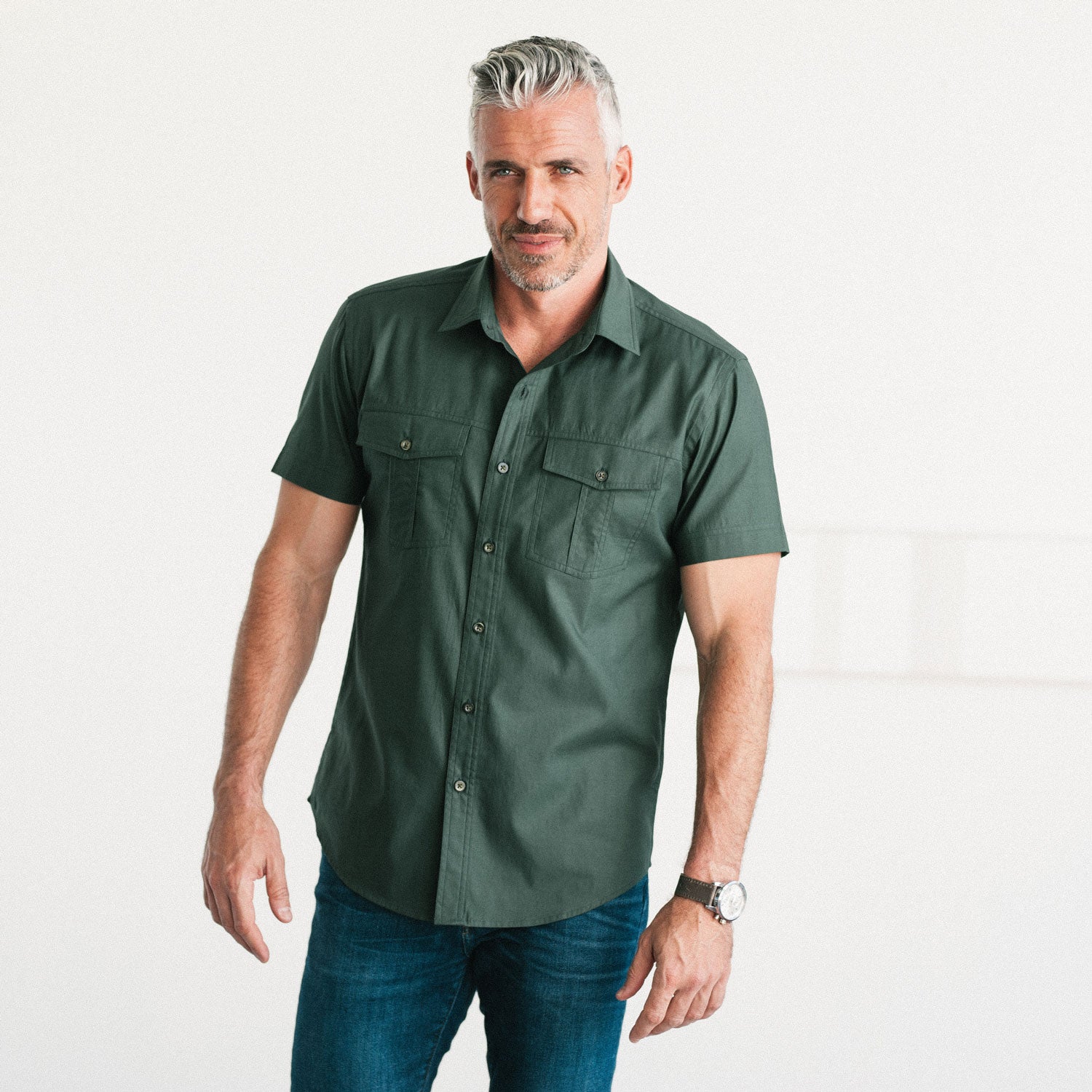 Primer Short Sleeve Utility Shirt – Forest Green Mercerized Cotton