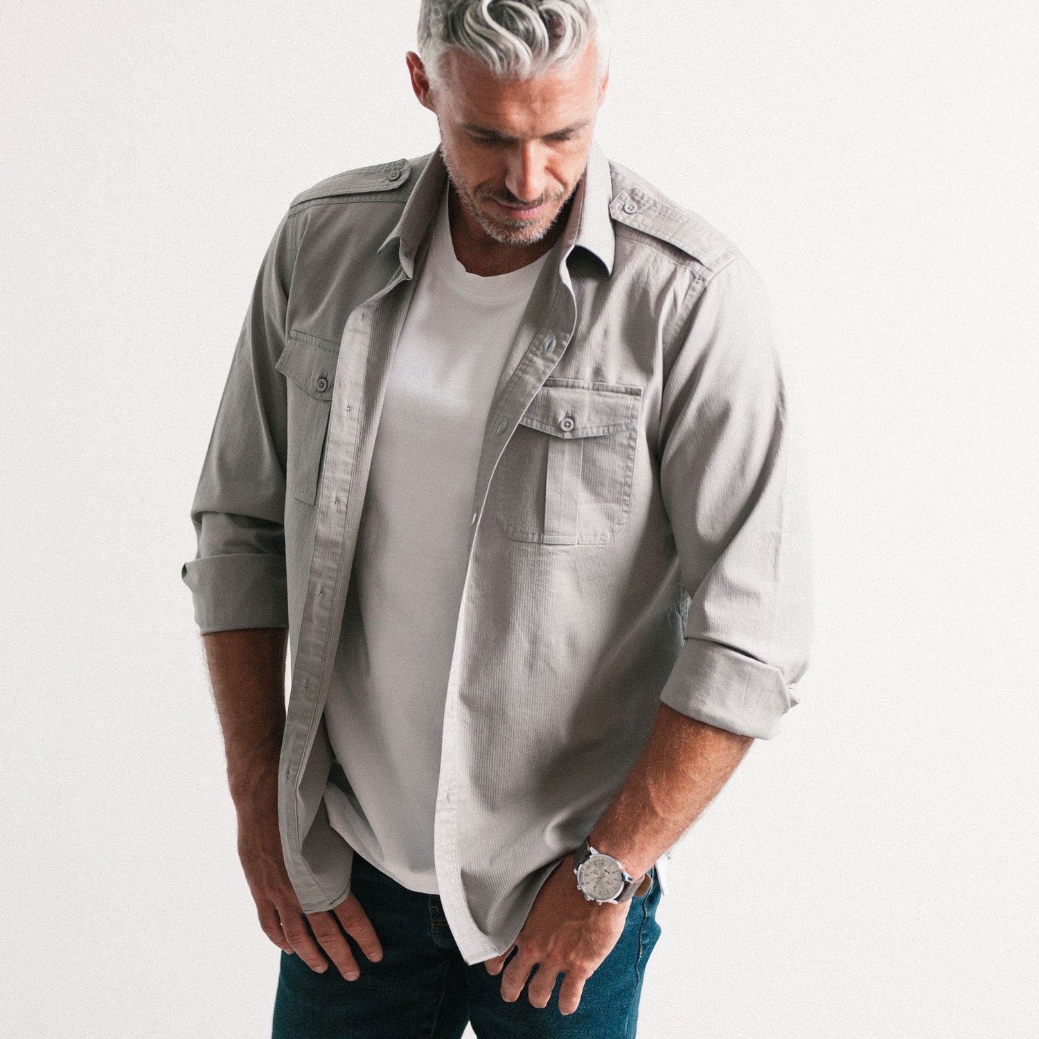 Engineer Utility Shirt – Stone Gray Cotton Shadow Stripe