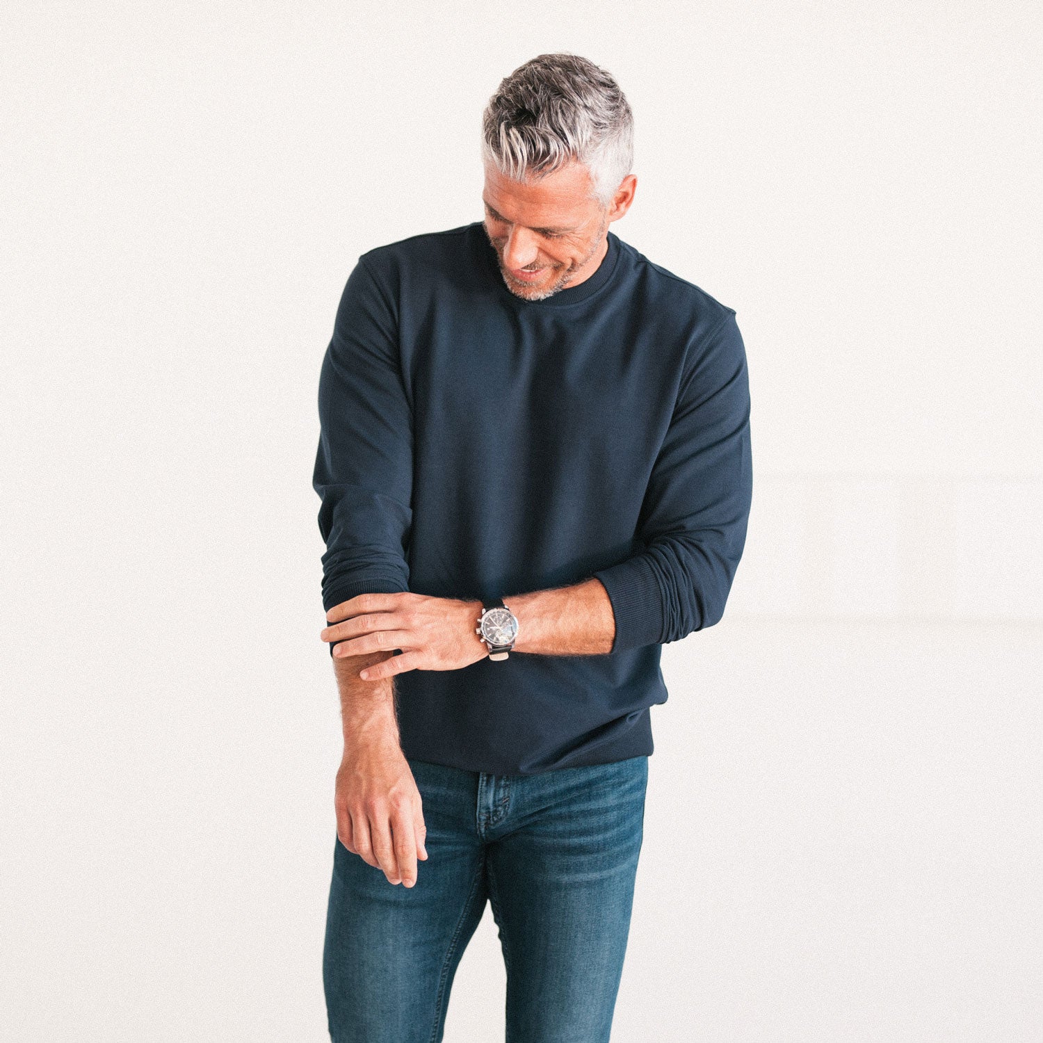This Essential Batch Sweatshirt is classic comfort. Made from our medium weight soft cotton spandex French Terry. It's the perfect warmth for brisk mornings but not too hot to be worn all day. Ideal for layering over Batch shirts or over a t-shirt with joggers.